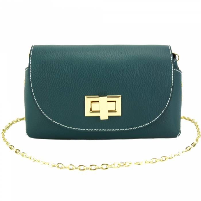 Martina clutch shoulder bag in 100% calfskin leather with gold metallic hardware and beautiful gold metallic chain shoulder strap in is designed and manufactured in Italy. This small Iconic bag is a real gem that can be combined with any look from the most metropolitan to the most formal.